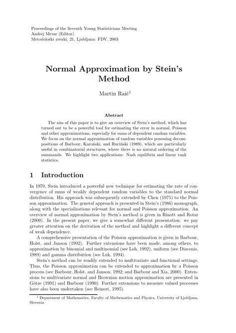 Download Normal Approximation by Stein's Method Epub By Click Button. Normal Approximation by Stein's Method it’s easy to recommend a new book category such as Novel, journal, comic, magazin, ect. You see it and you just know that the designer is also an author and understands the challenges involved with having a good book. You can easy klick for detailing book and you can read it online, even you can download it
